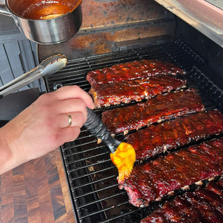 Die Zeit ist um und die Ribs noch einmal drehen und die Fleischseite ein letztes Mal mit der Sauce „fürs Auge“ lackieren.