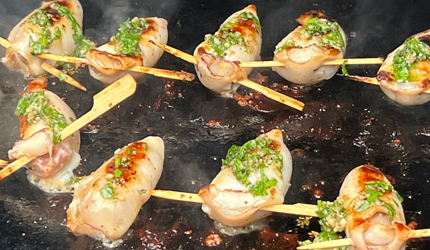 Das richtige Grillgerät ist leicht gefunden. Der Gasgrill, Holzkohlegrill oder die Feuerplatte sind optimal. Starke Hitze, leicht regelbar. Erst mit mittlerer Hitze angrillen und nach dem die Tuben Farbe genommen haben, bei geringer Hitze garziehen lassen.